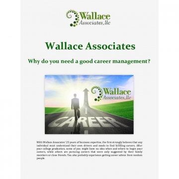 With Wallace Associates' 25 years of business expertise, the firm strongly believes that any individual must understand their own drivers and needs to find fulfilling careers. After your college graduation, some of you might have no idea when and where to begin your careers, while others are pursuing careers that were only suggested by their family members or close friends. You also probably experience getting career advice from random people.