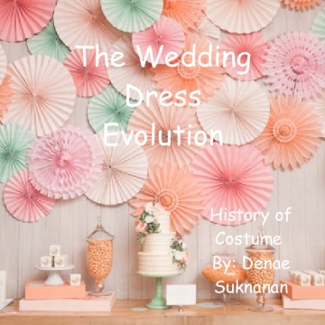 This book is a book representing the history of cotumes through certain periods in time. The focus is wedding dresses and how the environment had influenced what was being worn.