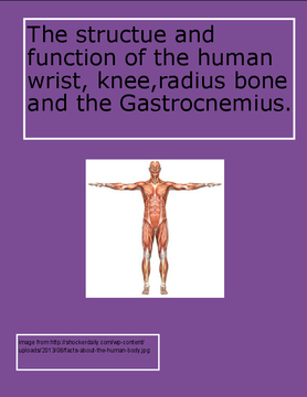 The functions and anatomy of the human wrist, knee, gastrocnemius and the radius bone.