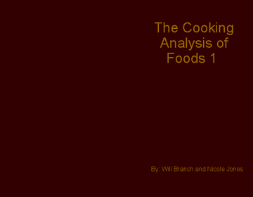 The Cooking Analysis of Foods 1