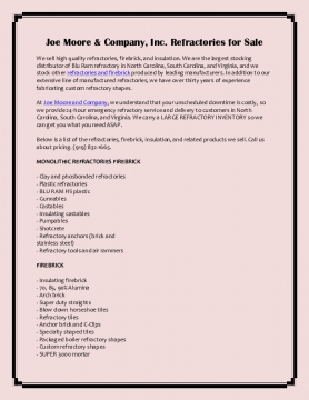 Joe Moore & Company, Inc. Refractories for Sale