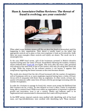 Hass & Associates Online Reviews: The threat of fraud is evolving; are your controls?
