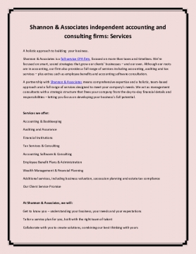 Shannon & Associates independent accounting and consulting firms: Services