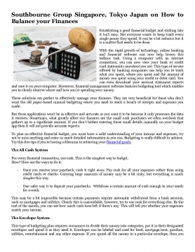 Southbourne Group Singapore, Tokyo Japan on How to Balance your Finances