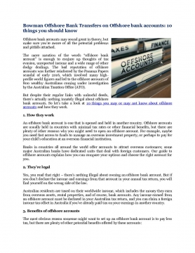 Bowman Offshore Bank Transfers on Offshore bank accounts: 10 things you should know
